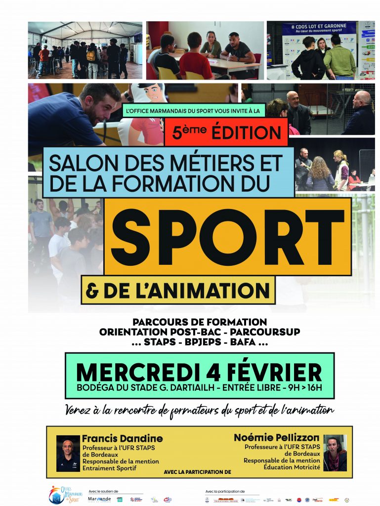 Organisé par l’Office Marmandais du Sport avec le soutien de la Cité de la Formation de Marmande depuis 2022, le Salon des Métiers et de la Formation du Sport et de l’Animation revient en 2024 pour une troisième édition.