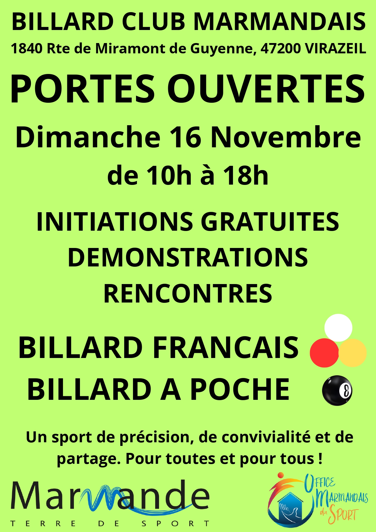 Portes ouvertes du Billard Club Marmandais, venez essayer !